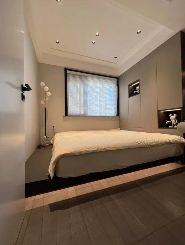 主卧是家中的另一个重点。卫生间加宽了10cm,砸了一半墙,扣了两个门道与另一间卧室相连,变成了次卧室。