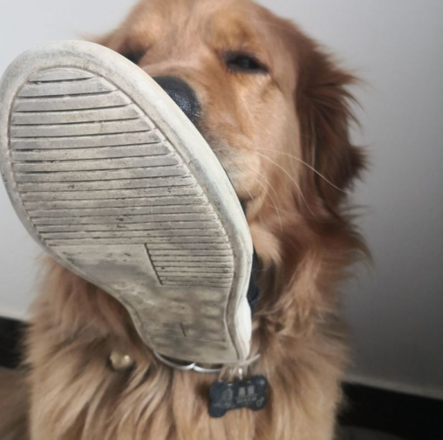 叼着我鞋,还跟我耀武扬威!那表情、动作,像极了小人得志!