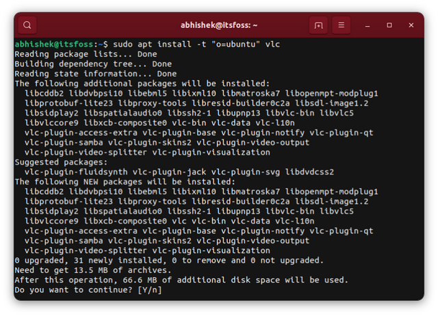 因此,下面的命令将安装 VLC 版本 3.16 及其所有的依赖关系: