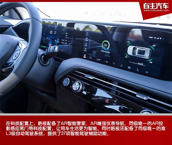 在科技配置上,皓极配备了AR智能管家、AR增强仪表导航、同级唯一的AR投影感应尾门等科技配置,让用车生活更为智能。同时皓极还配备了同级唯一的准L3级自动驾驶系统,提供了27项智能驾驶辅助功能。