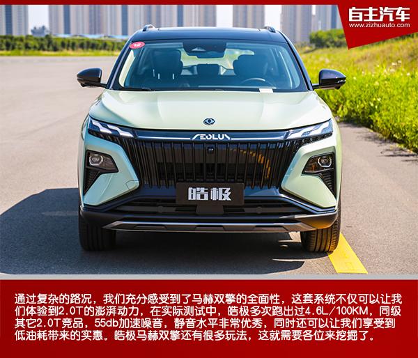 通过复杂的路况,我们充分感受到了马赫双擎的全面性,这套系统不仅可以让我们体验到2.0T的澎湃动力,在实际测试中,皓极多次跑出过4.6L/100KM,同级其它2.0T竞品,55db加速噪音,静音水平非常优秀,同时还可以让我们享受到低油耗带来的实惠。皓极马赫双擎还有很多玩法,这就需要各位来挖掘了。