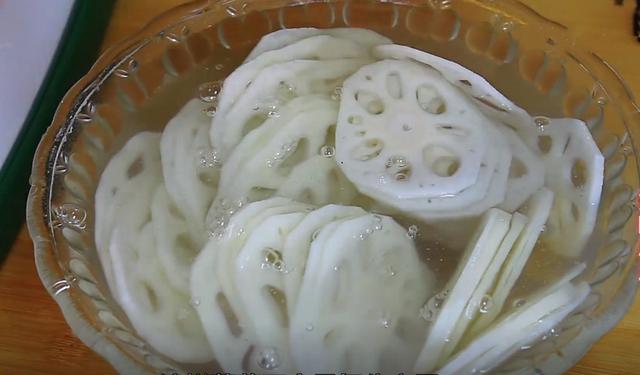 1、莲藕切点两头、然后切成薄片,切好之后把莲藕放入清水里面,加入少许白醋,这样莲藕就不会氧化变黑。