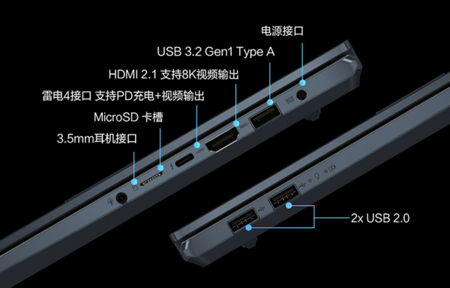 华硕无畏Pro15 2022还拥有丰富的扩展接口,其中满速雷电4接口支持100W PD快充,同时能够外接高性能显卡坞、高速SSD、高性能扩展坞等各类扩展需求。另外,在机身一侧还配有全新HDMI 2.1接口,支持外接8K显示器,高效便捷。双天线高速Wifi6E网络连接,低延迟高带宽,时刻享受超快网络体验。