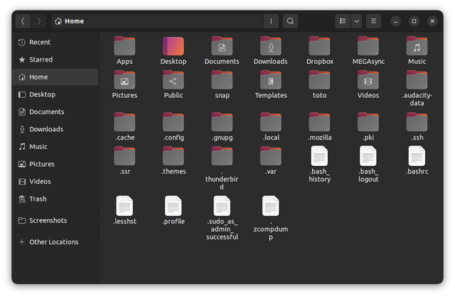 下图展示了我的主目录中隐藏的文件和文件夹。