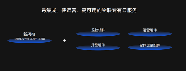 萤石物联专有云2.0架构下发布了四个新的业务组件。监控组件可对硬件及系统资源,服务日志,接口请求等数据做监控,并告警通知,保障开发者的系统服务落地后正常运行;升级组件主要为开发者提供智能硬件的在线升级的能力,降低项目交付后的硬件维保服务成本;运营组件为开发者提供一个系统运营工具,以可视化的方式呈现了智能产品的开发流程,缩短面市周期,提升生产效率;专有云定向流量组件,以低成本的方式解决开发者在物联专有云场景下使用移动网传输的问题,省心、省钱。