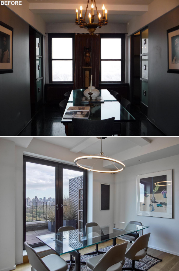 以前的家很暗,光线不够。天花板掉了,定制的橱柜格子很老气。