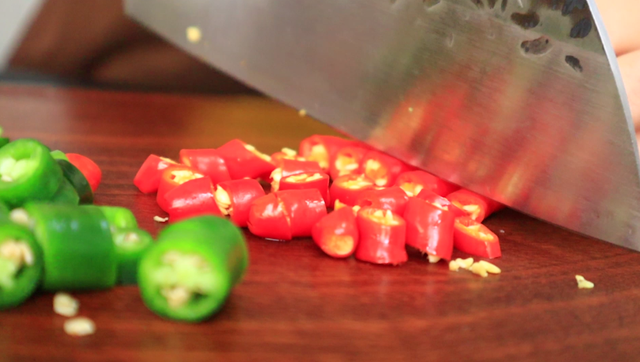 主要食材:鸡腿肉、小米椒、青椒、大蒜、生姜