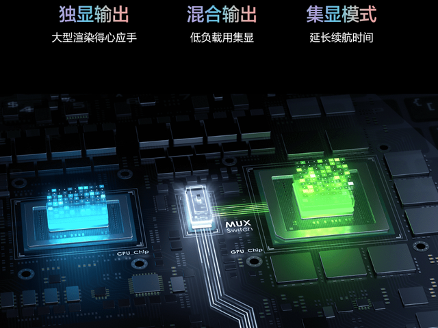 游戏方面,屏幕具备165Hz刷新率和3ms响应时间。此外,独显输出/混合输出/集显模式的双显三模技术也没有缺席,用户可以根据实际使用情况进行切换。