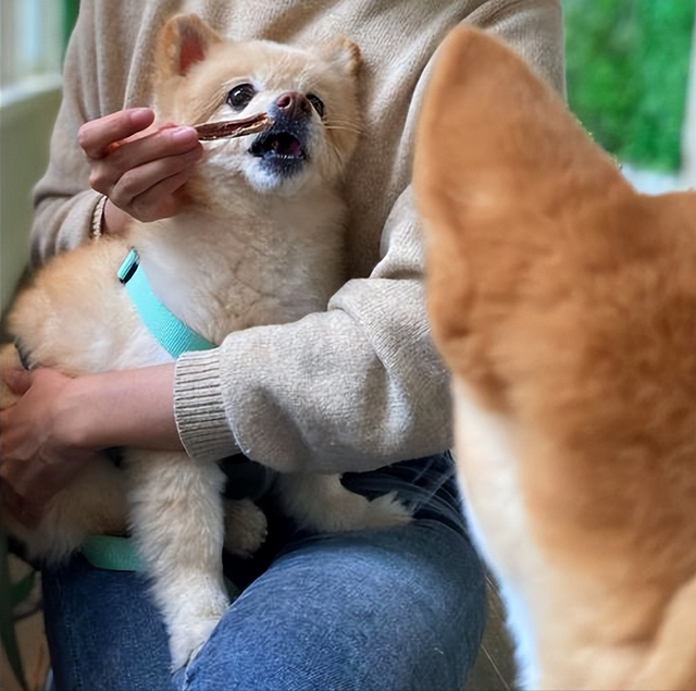 养狗后,很多人的包包不再是烟、化妆品和手机,而且狗狗零食,无论走到哪就带到哪,看到狗狗就喂一点。建议最好带些冻干零食,不会太重。