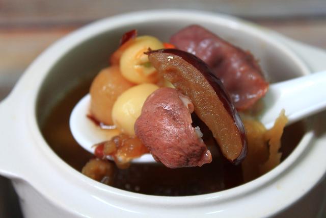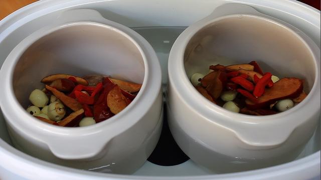 4,炖盅里面放入所有食材,然后加入纯净水,炖上1个小时。如果家里没有炖盅的话,可以用砂锅。