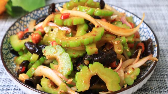 主要食材:苦瓜、洋葱、木耳、小葱、小米椒、大蒜
