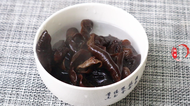 7、接着咱们把泡好的木耳也焯一下水,,焯水2分钟左右捞出,然后放入清水里面。
