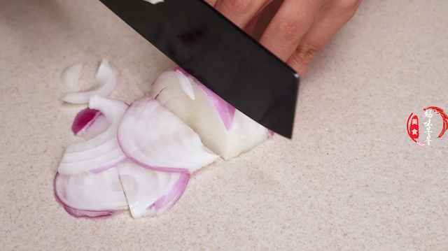 3、准备一些木耳,加少许盐,给它泡发一下,接着准备半个洋葱给它切成细丝,切好之后用手抖散,然后装盘备用。