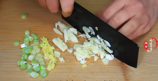 4、接下来准备配菜,一小段葱白切成葱花,一点生姜切成姜末,大蒜可以多来几个,切成蒜末。