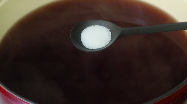 4、最后放入冰糖,想要甜,还要来一勺盐,把糖搅拌融化就可以了,放凉冷藏一下,喝起来更美味。