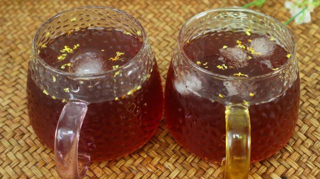 5、准备一些冰块,倒入冷藏好的酸梅汤,撒上可食用的干桂花,这样一杯好喝的酸梅汤就做好了。