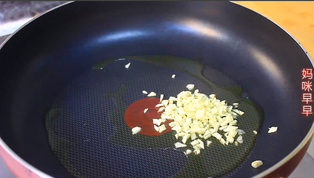 5,碗里加入一勺生抽,一勺蚝油,一勺白糖搅拌均匀。平底锅里倒油,然后放入蒜末炒香,接着倒入料汁翻炒均匀。最后淋入水淀粉炒至粘稠就可以出锅了。
