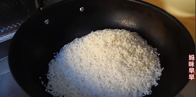 3、糯米煮的时候,要不停翻动,避免粘锅。煮到7成熟左右就可以出锅了,用手捏米,没有白芯就可以。