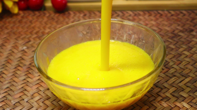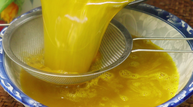 第二步、打好后倒入碗中备用,这也是金酸汤漂亮的关键。