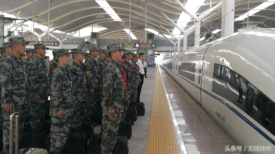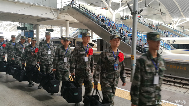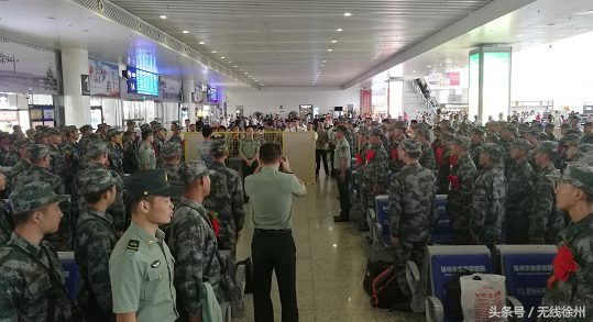 上午10:00,徐州高铁东站候车室,首批1100余名新兵,身着迷彩服,胸戴大红花,整装待发。徐州军分区政治委员李中双大校到现场看望慰问起运新兵,寄语他们要继承发扬徐州革命老区光荣传统和淮海战役精神,传承红色基因,争当践行强军目标的排头兵,争做有灵魂、有本事、有血性、有品德的新一代革命军人,以实际行动为部队建设作出贡献,为鲜艳的八一军旗添彩,为徐州家乡和父母亲人争光。