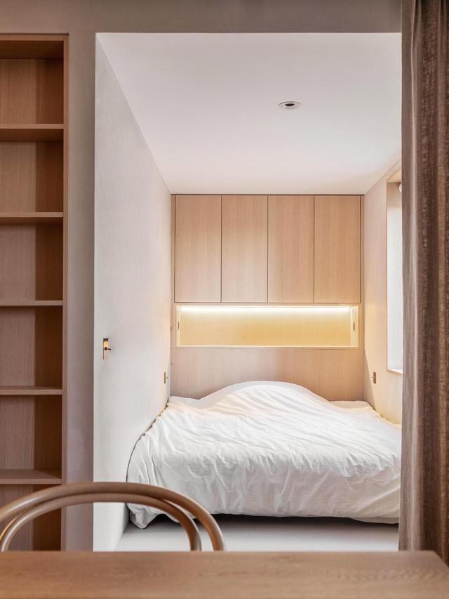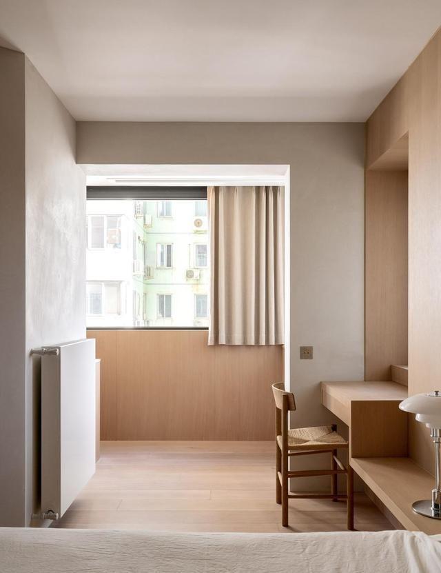 尤其是右手区,作为客房,平时使用率不高,所以不预留空间,外面加了窗帘(使用时拉窗帘,保证客人隐私)。得益于老房子公寓的调整,即使是这么狭小的功能区也显得特别宽敞。