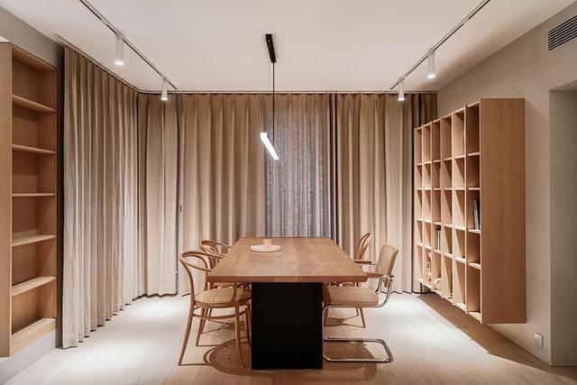 客厅的一侧是长桌区。这个区域已经成为一个集餐厅和学习为一体的功能区。