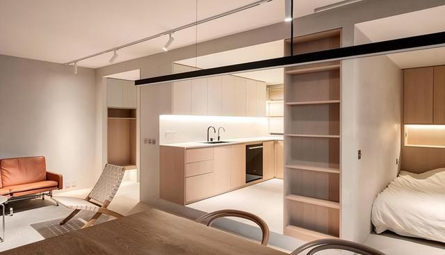 在整个功能区的改造中,从左到右依次是玄关、厨房、客房。整个空间的布局很不一样。