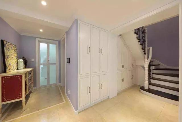 过道之处摆放端景台,神秘的法式挂画装饰,利用楼梯下方处空间做收纳,空间利用极为合理。
