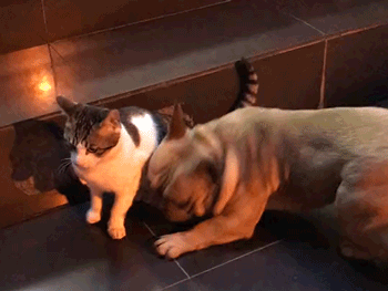 看到自家狗狗和猫咪如此融洽,主人也很开心,并且热衷于在社交网络上分享它们的日常!