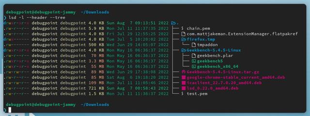 我想向你展示的第一个应用叫做 lsd,也就是 “LSDeluxe” 的缩写。它是对 GNUls命令的重写,具有列标题、各种项目的颜色、字体和图标支持等附加功能。
