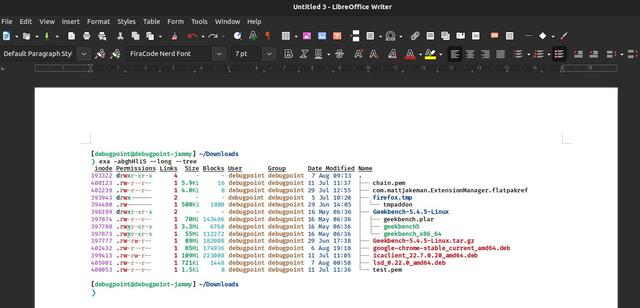 正如你所看到的,它看起来非常漂亮,用不同的颜色代码表示权限、文件类型和文件夹,甚至在文件名旁边添加图标。