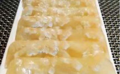 邳州凉粉分为两种,山芋凉粉和豌豆凉粉。炎炎夏日,调一份酸辣可口的凉粉,可以说是餐桌上必不可少的凉菜了。凉粉里不可或缺的就是蒜泥,加上辣椒、白醋、酱汁,味道还是很不错的。