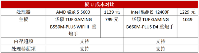 如果都选择DDR4内存,锐龙5 5600和酷睿i5 12400F平台的装机价差主要来自板U。别看两款处理器价格价格仅相差100元,不过B550主板的价格可是比B660 D4便宜了350元,平台整体价格实惠了450多元,锐龙5 5600的价格优势可谓相当明显了。而且追求极致性价比的用户甚至还能选择B450,打造平台的整体价格还能再便宜不少。