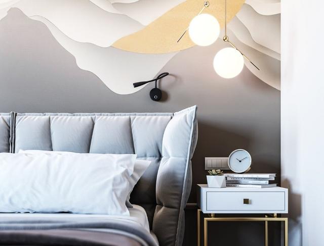 床头柜和灯源的设计非常精致巧妙,每个细节都很有艺术感和设计感。