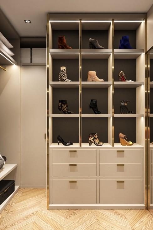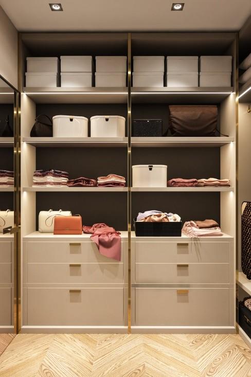 储物格上整齐的毛巾和整齐摆放的包包随处可见,真的是每个女生都羡慕的区域。