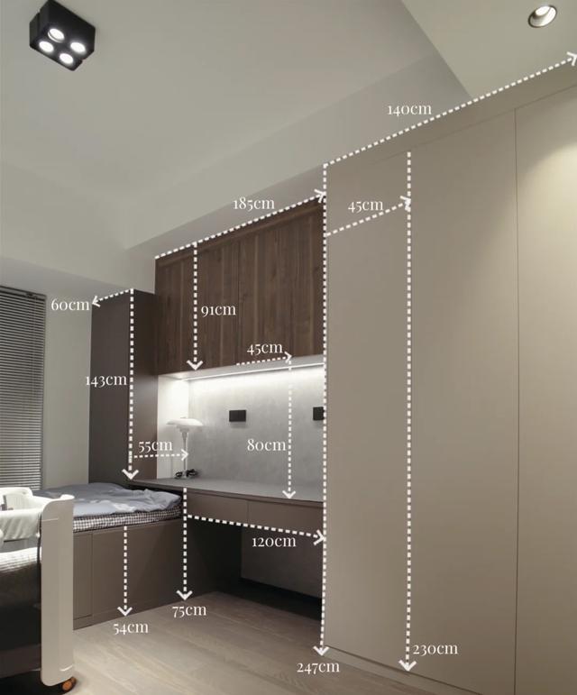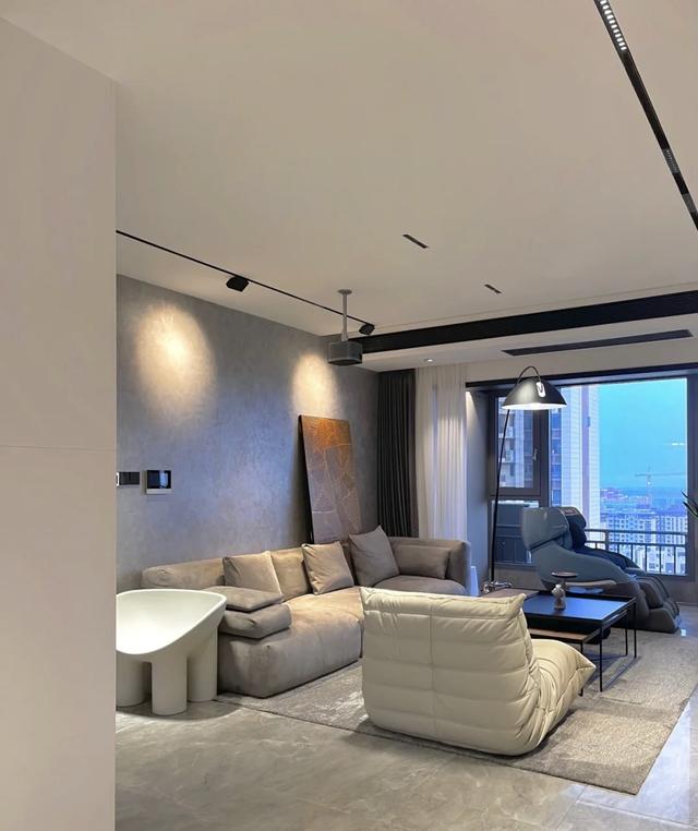 家是温暖的港湾,卧室是最放松的地方。主卧整体色调是充满质感的高级灰色。主卧战斗灯色温4000K,圆形射灯3500K。百搭的色温让人很舒服。头部背景墙设计的灰色天鹅绒艺术涂层,高级感顿时扑面而来。木床由顶部镶嵌1cm床头灯带,整体营造空间感。