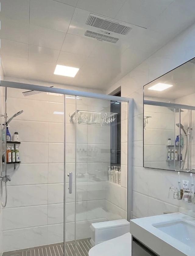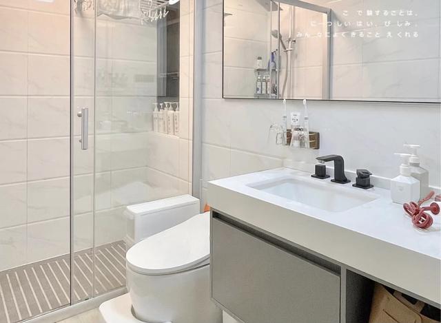 卫生间有干湿分离设计。整体白色系以白色为主,视觉上简洁干净。
