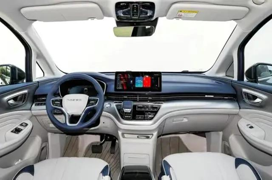 iMAX8采用T字型的中控布局,功能区的划分非常清晰,即便是第一次使用也很容易上手。车内用料非常考究,覆盖物以皮质材料为主,无论是观感还是触感都能够令人满意。中控台使用了拼色的颜色搭配,上深下浅的配色拥有不错的层次感。贯穿式的空调出风口让车内看起来非常舒展,拓宽了视觉空间感。车内使用了双12.3英寸的液晶大屏,车机内置了最新版本的斑马智行VENUS系统,为客户带来最智能的用车体验。iMAX8在前排设置了多个储物空间,包括杯架、储物槽等空间,乘客使用起来足够顺手。在配置方面,iMAX8 EV支持360度全景影像、前后倒车雷达、盲区监测等配置。