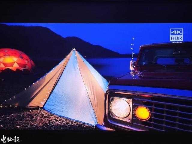在夜晚场景中,明暗之间的高对比,很讲究投影对画面暗部的处理,帐篷、汽车部分的清晰度与灯光形成的高反差,这些都是考验投影仪的地方。