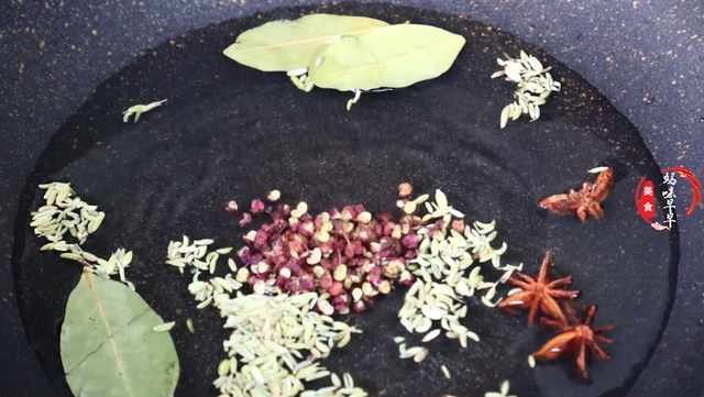 3、锅里倒入两碗清水,然后放入香叶、八角、小茴香、花椒,大火煮开,然后转中火煮上10分钟,最后关火放凉备用。
