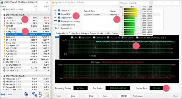 ·开启全部4颗P核(4核8线程),关闭所有E核,续航866分钟,即14小时26分钟;