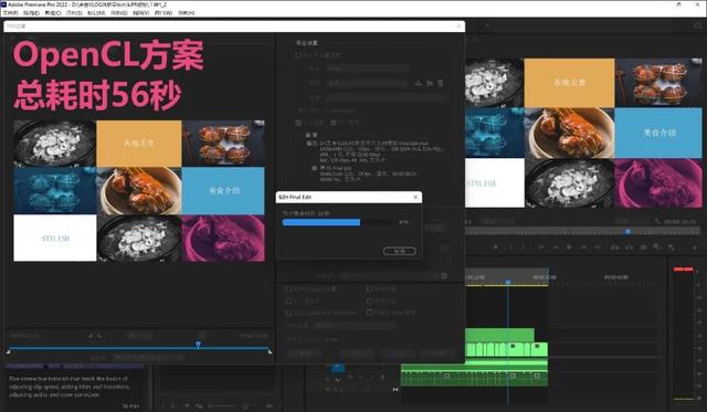 ▲Premiere Pro的视频制作应用,用一堆高清图片制作一个带有转场特效的美食宣传视频,OpenCL方案非常考验集显的性能,而该项目只要56秒便完成了。而一般同处理器机型的耗时在66秒~75秒。YOGA Pro 14s的性能优势可见一斑。