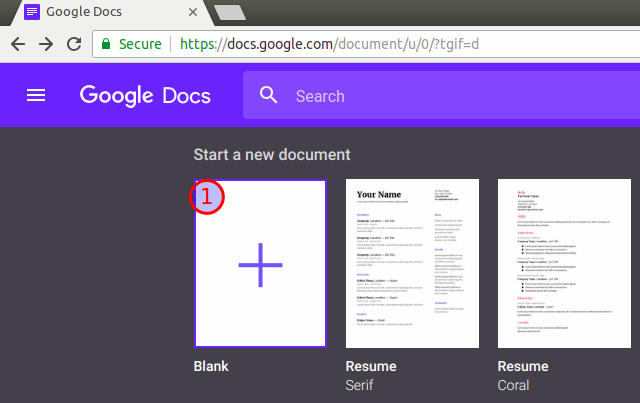 从 Chrome 打开 https://docs.google.com并创建一个空白文档。