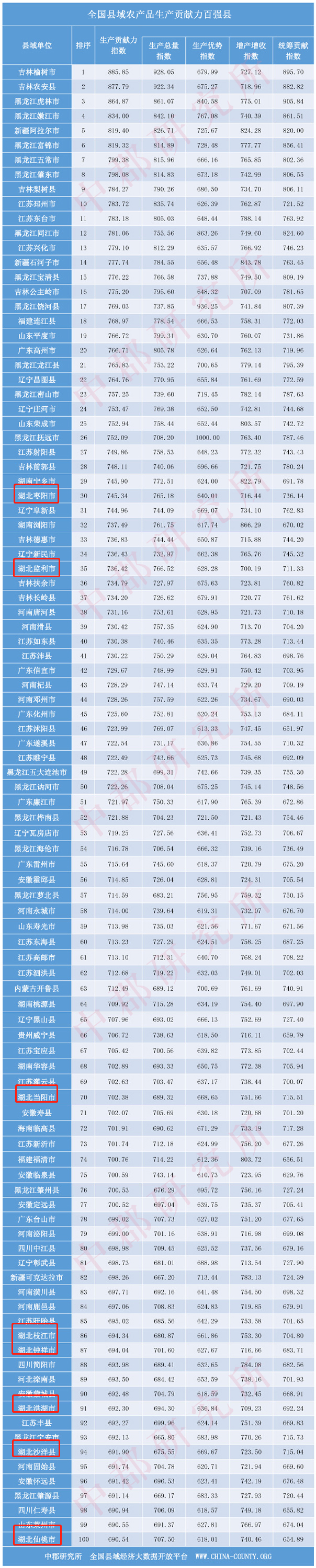 近日,全国县域经济与县域发展研究咨询专业社会智库——中郡研究发布了《全国县域农产品生产贡献力指数监测评价报告》,揭晓全国农产品生产贡献力百强县名单,湖北8个县市上榜。