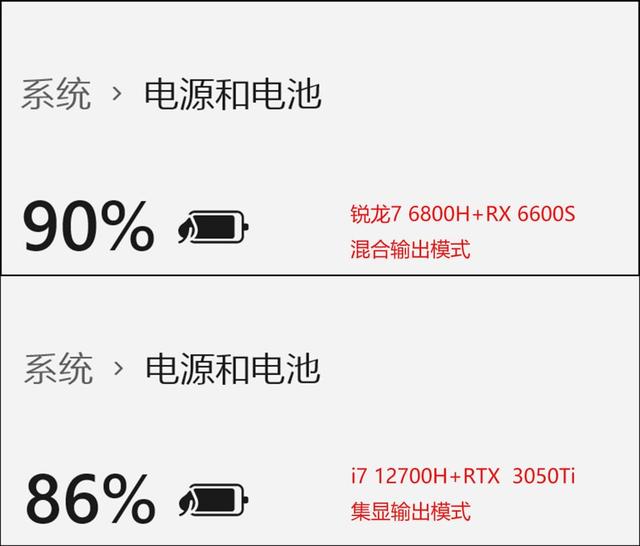 i7 12700H+RTX 3050Ti即便是在集显输出模式下,续航也就7小时左右,差距相当明显。