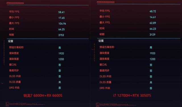 《赛博朋克2077》,著名的烂优化3A大作,R9000X 2022对比i7 12700H+RTX 3050Ti的结果是:58fps对比48fps,为“基本流畅”对“勉强可玩”级别。