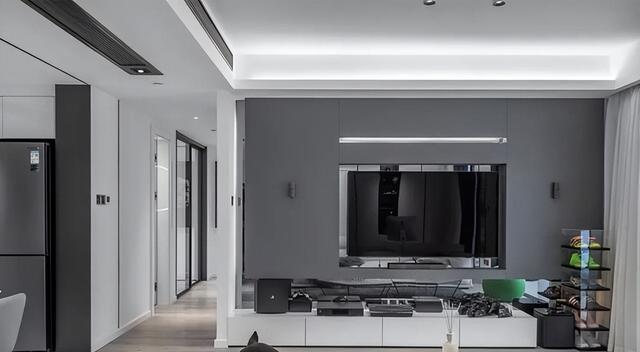 在客厅的主要空间中,大量使用灰色和白色的组合,没有过多的其他颜色,让客厅看起来简洁、整洁、奢华!
