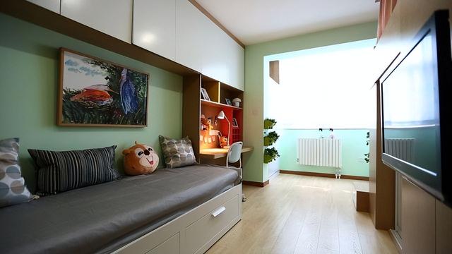 次卧打造成了孩子们和丈母娘的卧室,良好的采光,还有上下铺独立空间的设计,能让孩子拥有更好的成长空间。下铺是活动区,也是衣柜。