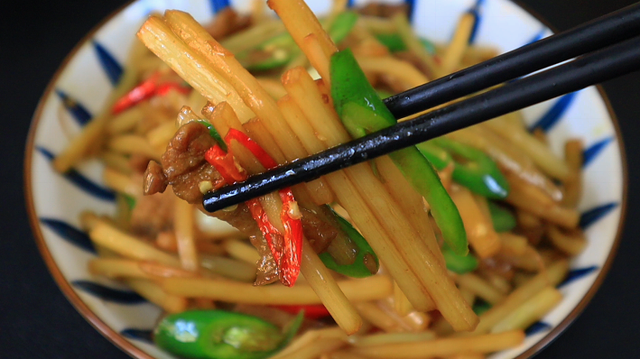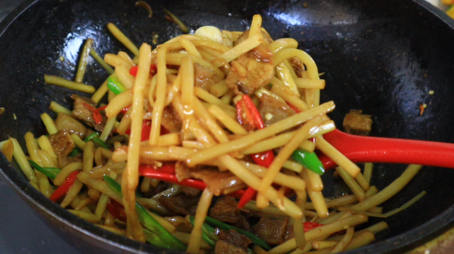 主要食材:竹笋丝、五花肉、青红椒、大蒜