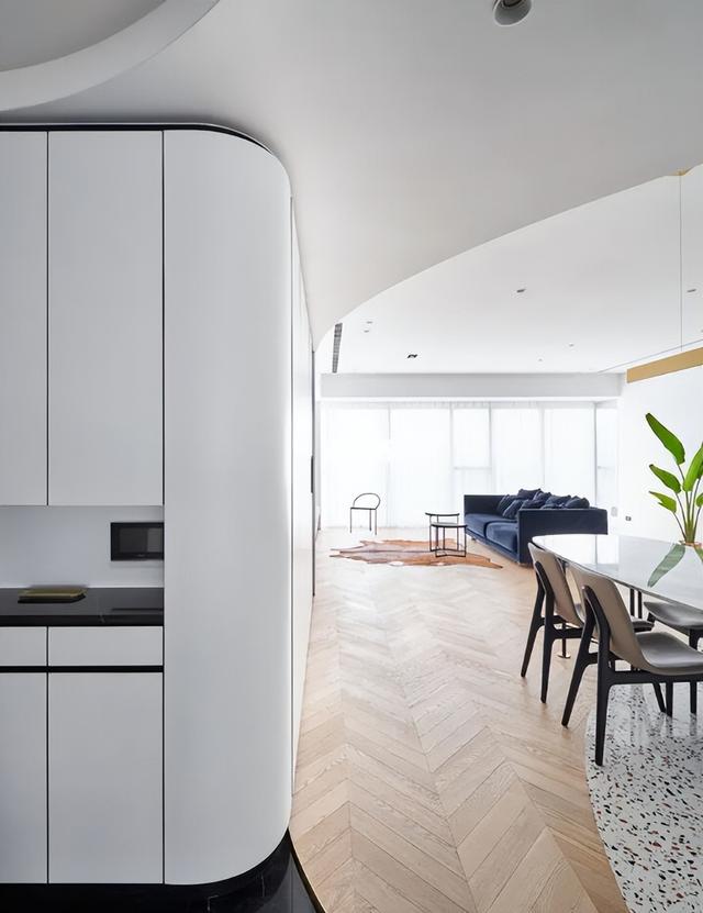 幼儿在学步时步伐不稳,容易绊倒,但又不愿在柜子和家具上包防撞边,怕留下残胶或被幼儿弄坏。近年来非常流行的弧形设计可以应用在柜体和梁柱的转角处,不仅非常美观,而且安全。